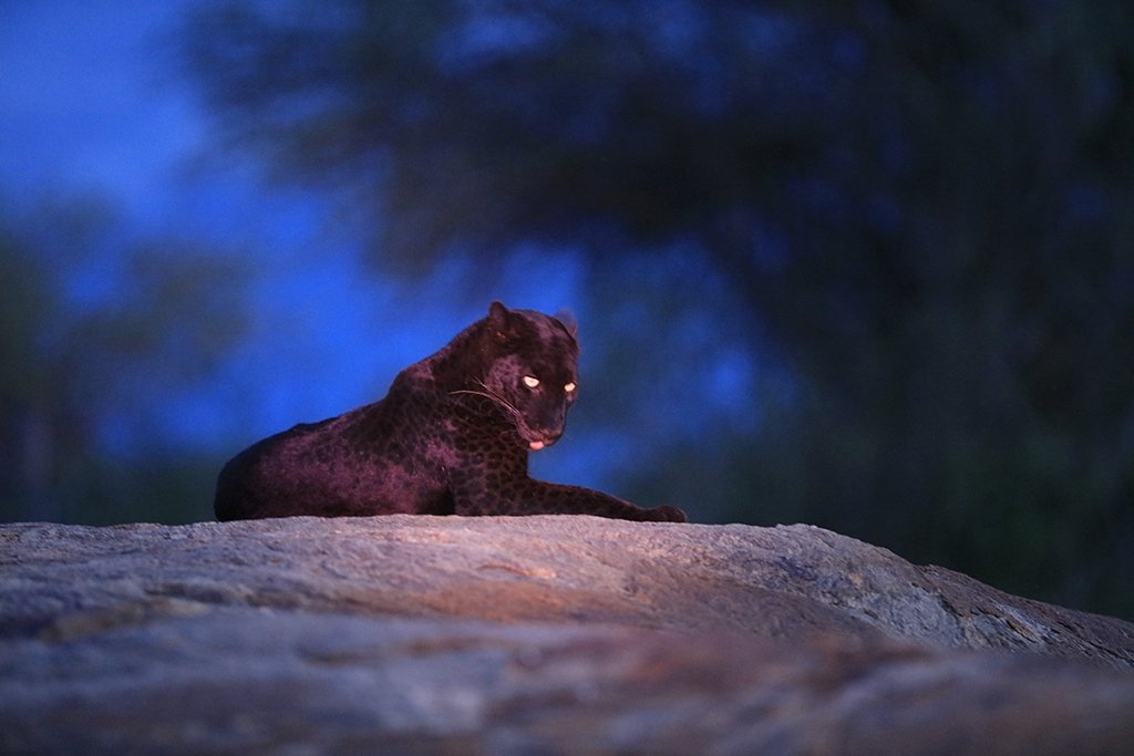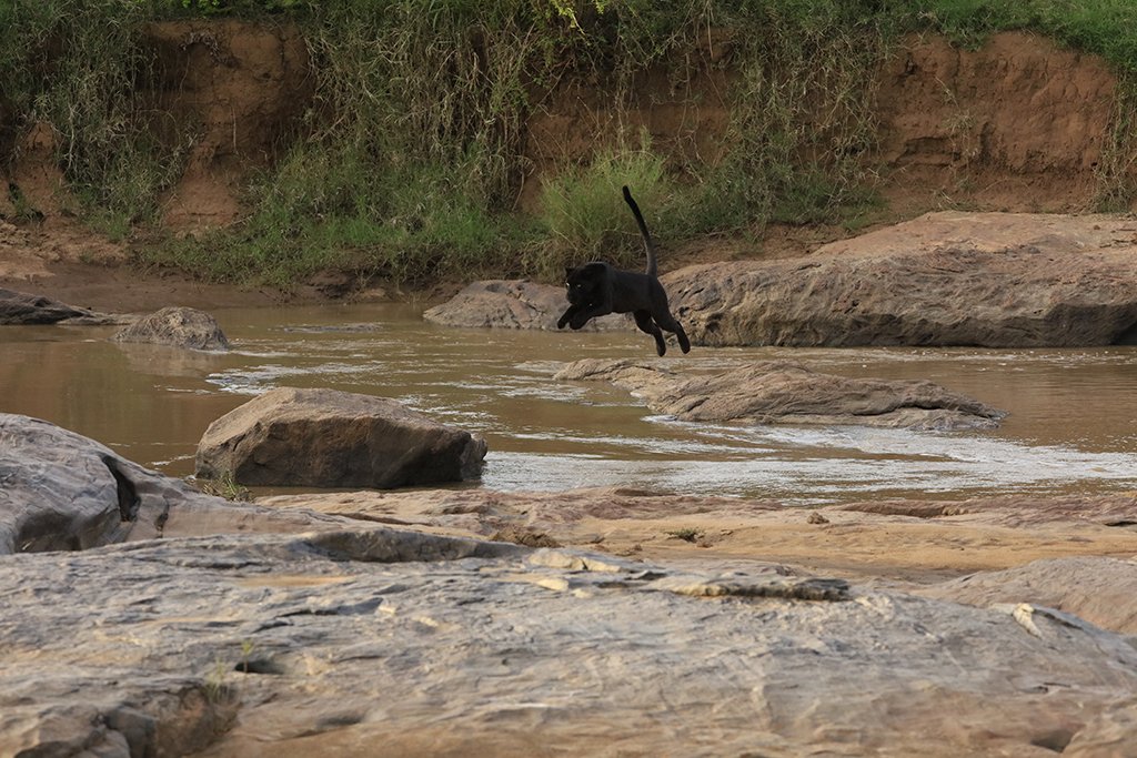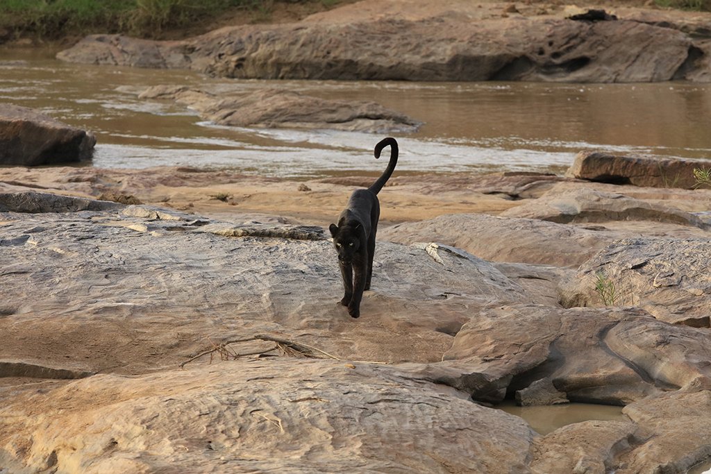 Etter Masai Mara drar vi til Laikipia som ligger nord i Kenya, på ekvator. Her har vi tre kvelder og tre morgener på jakt etter den svarte leoparden. Disse melanistiske kattene er ekstremt sjeldne og Laikipia er privilegerte som har dem. En hunnunge ble født og oppvokst mindre enn 1 km fra leiren. Hun blir sett ganske regelmessig og er spesielt avslappet rundt kjøretøy som gir oss de mest imponerende observasjonene. Hun ses ca 5 netter i uka, men hun er et vilt dyr og kan selvsagt være uforutsigbar når hun vil. Det er minst 3 andre individer som vi også ser ganske ofte i landskapet.