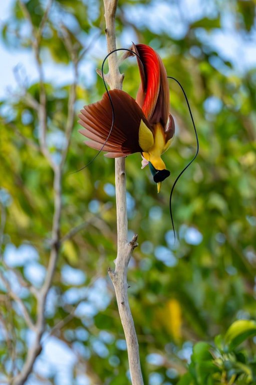 Her står vi opp klokka 05 og begir oss til skjulene for to paradisfuglarter – kongeparadisfugl (king paradisebird) og slørhaleparadisfugl (Greater paradisebird). Kongeparadisfuglen spiller på bakken, mens slørhaleparadisfuglen er oppe i trærne. For å fotografere den blir du heist opp til en plattform oppe i tre og vil da ha paradisfuglene spillende på greinene rundt deg – med fantastisk utsikt utover regnskogen.