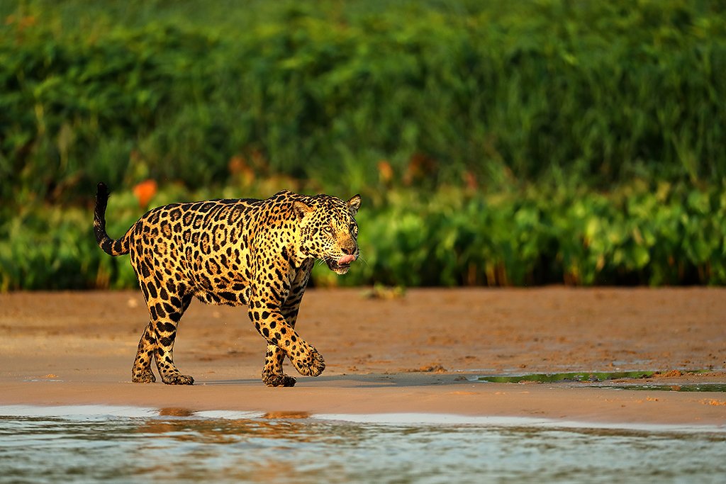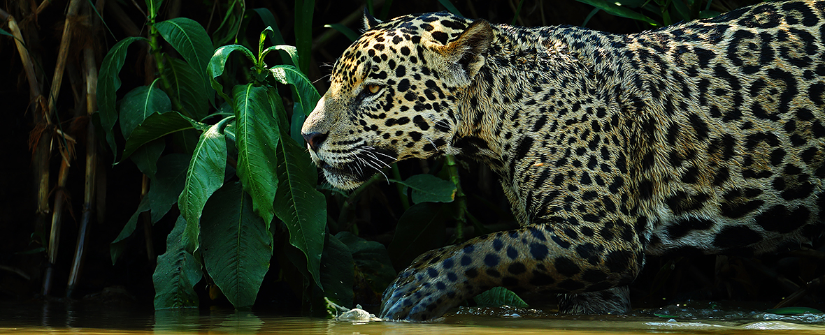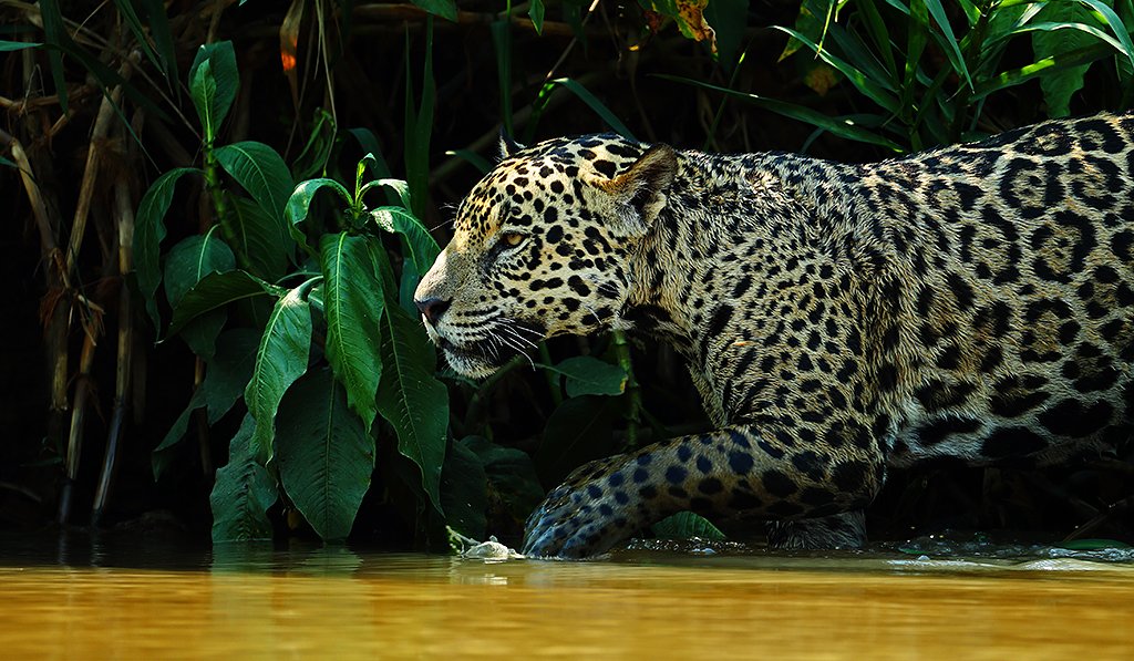 Jaguaren kan bli to meter lang og veie 160 kilo. Dette er verdens tredje største kattedyr, bare slått av tiger og løve. Jaguaren er på mange måter Sør-Amerikas svar på tigeren. Den lever i tett regnskog så vel som i åpne sumpområder. Akkurat som tigeren trives jaguaren spesielt godt i nærheten av vann, og den går ikke av veien for å ta seg en svømmetur over de mange elvene og vannene.