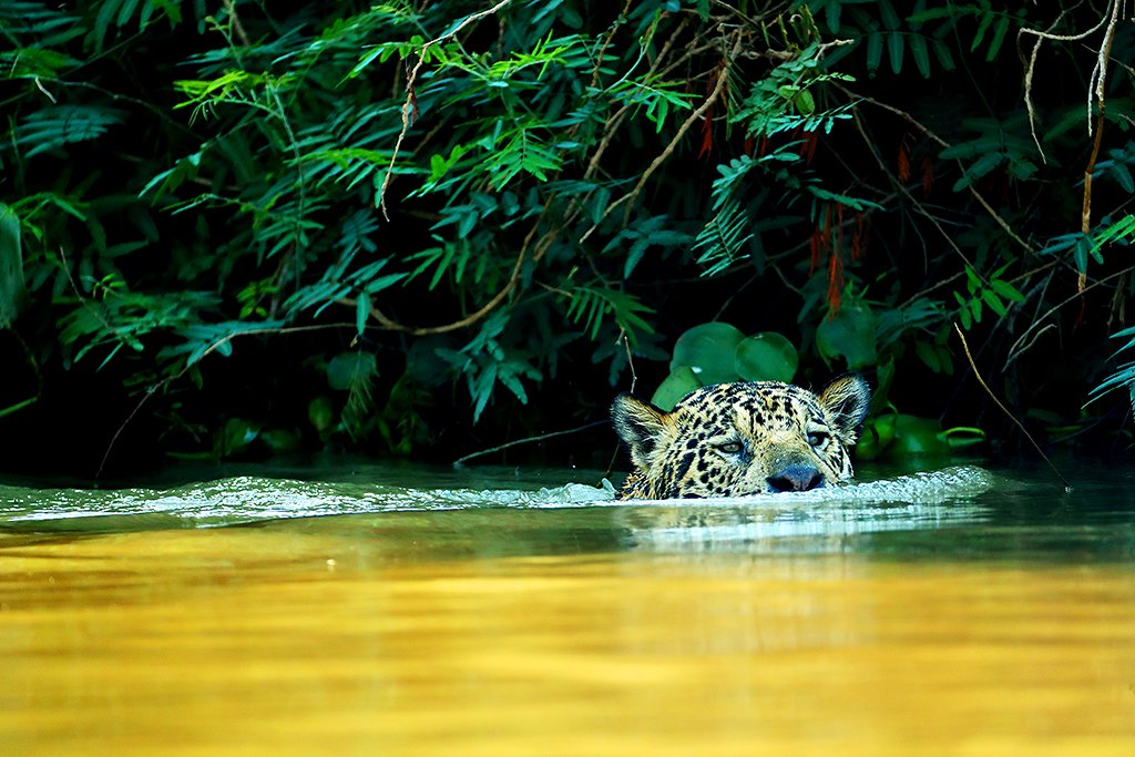 SouthWild Pantanal Lodge og Naturezas Flotel (flytende hotell) er strategisk plassert på de aller beste stedene i hele Pantanal for å ta en tur og se ozeloter, brasilianske tapirer, kjempeotere og jaguarer. Dette er det eneste selskapet som garanterer disse artene. Ettersom båtene trafikkerer vannet i de 100 km med elvekanaler i Jaguarland, planlegger vi bevisst utfluktene slik at de også inkluderer besøk til de beste stedene for å se kjempeotere og hyasintaraer, og vi ser alltid begge artene ekstremt godt. Båtturene gir også enestående utsikt over to apearter og et utall fugler. Kaimaner vil vi også se, de fiskespisende krokodilleslektningene, som også er byttedyr for jaguaren.